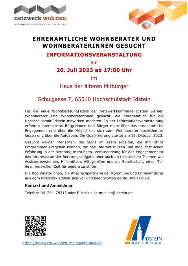 2023-07-22:Heftrich (me) - Wie ja bereits berichtet, hat sich die Stadt Idstein nun dem Netzwerk Wohnen angeschlossen, wie ja schon vor einige Jahren Waldems, wo das sehr gut