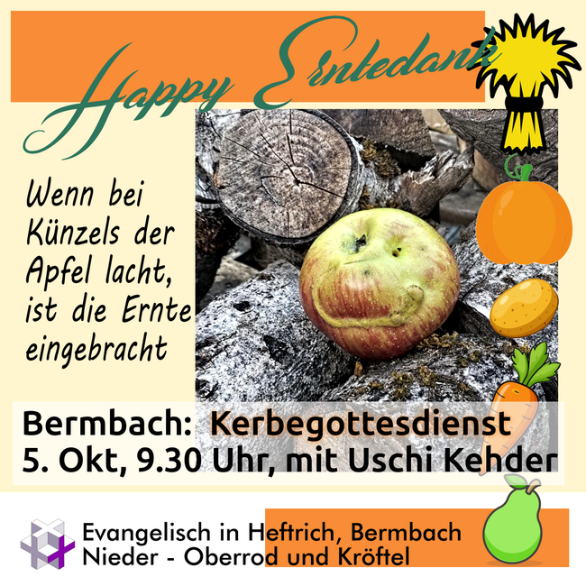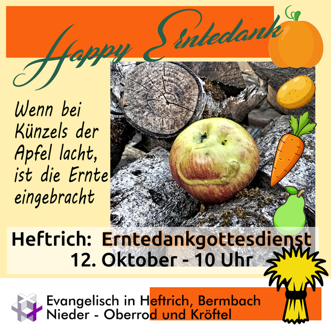 - Der Platz in der Kirche ist z.Zt. auf 30 Personen begrenzt; sollten mehr Besucher kommen, so wird im Anschluss an den ersten Gottesdienst ein zweiter angeboten werden; nutzen Sie gerne auch unser Angebot für die Andacht 'Innehalten' am Freitag-Abend (18.30 Uhr) in Heftrich.