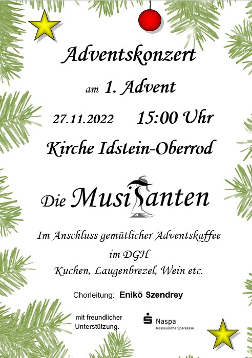 nachdem das letzte Konzert der MusiTanten leider ausfallen musste, gibt es einen neuen Anlauf am 27. November 2022 (nicht 2023!).
