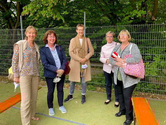 Gemeindemitglieder, Familie, Freunde und weitere Gäste waren auf den TSV-Platz am Wollenberghaus gekommen, auf welchem der Gottesdienst unter festlichem Spätsommerhimmel gefeiert werden würde. Unter den Gästen waren auch Mitglieder des Kirchenvorstandes unserer Kirchengemeinden, welche Antonia von Veregge zu Ihrem Vikariat aufgenommen hatten, so die ehemalige Vorsitzende Ursula Kilb und und - ganz offiziell als aktuelle Vorsitzende des KV Heftrich, Nieder-Oberod und Kröftel, Beate Demmer. Gekommen war auch Frau von Vieregges Ausbildungspfarrer Markus Eisele.