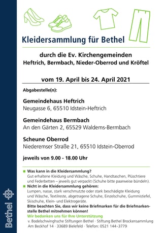 Kleidersammlung Bethel vom 19. bis 24. April