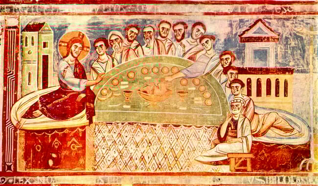 (Bild: Fresko in Sant’ Angelo in Formis bei Capua, um 1100 / Italo-Byzantinischer Meister - The Yorck Project (2002) 10.000 Meisterwerke der Malerei (DVD-ROM), herausgegeben von DIRECTMEDIA Publishing GmbH. ISBN: 3936122202. / Gemeinfrei : Das in diesem Bild dargestellte Kunstwerk und die Reproduktion davon sind weltweit gemeinfrei. Die Reproduktion ist Teil einer Sammlung von Reproduktionen, die von The Yorck Project herausgegeben worden sind. Das Copyright für die Zusammenstellung liegt bei der Zenodot Verlagsgesellschaft mbH und ist lizenziert unter der GNU Free Documentation License)